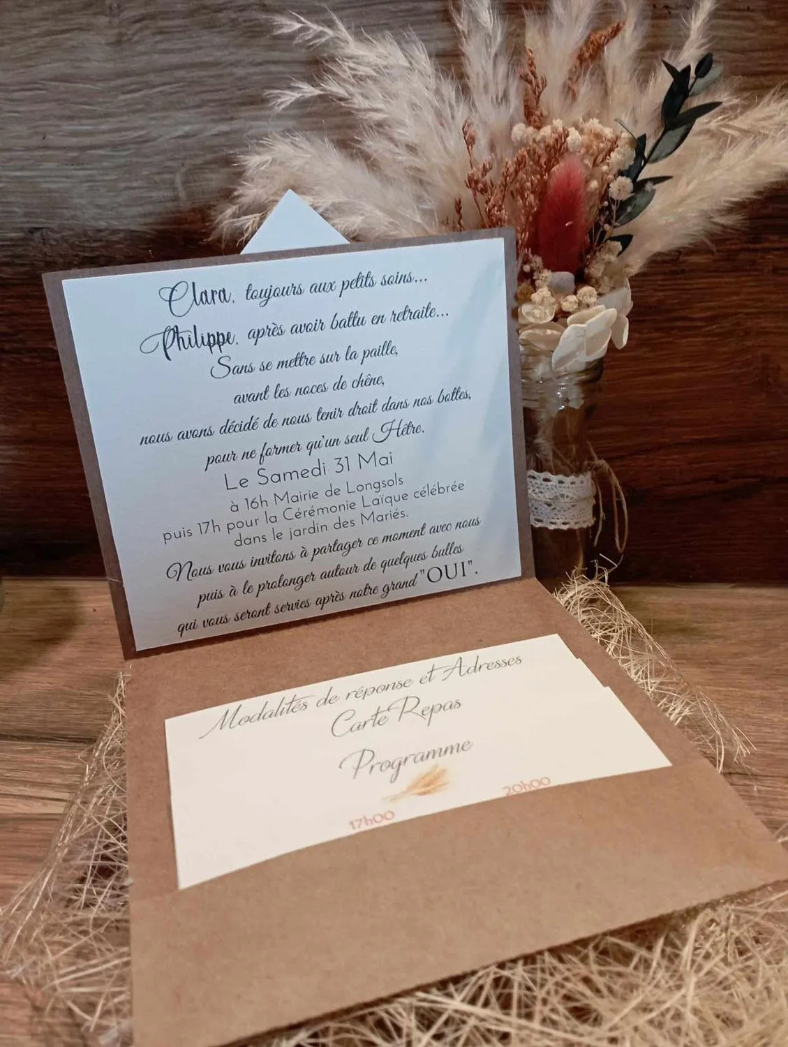 Du style champêtre au chic romantique, chaque création est unique, en harmonie avec votre thème et votre papeterie du jour J.